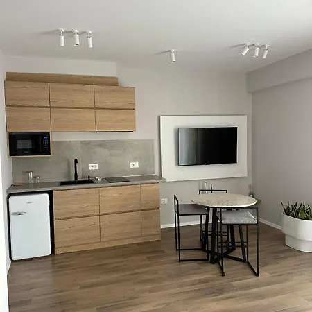 Hay una cocina bien equipada que cuenta con nevera y menaje de cocina. El Luxury Studio Apartment está a unos minutos a pie de la parada de autobuses Kombinat Lines.